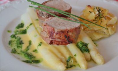 Rezept von Hopkes Hofladen aus Moormerland/Veenhusen Zutaten (für 2 Personen) • 1 Bund Spargel • 1 EL Butter • Zucker, Muskat • 1 Schuss Weißweinessig •...